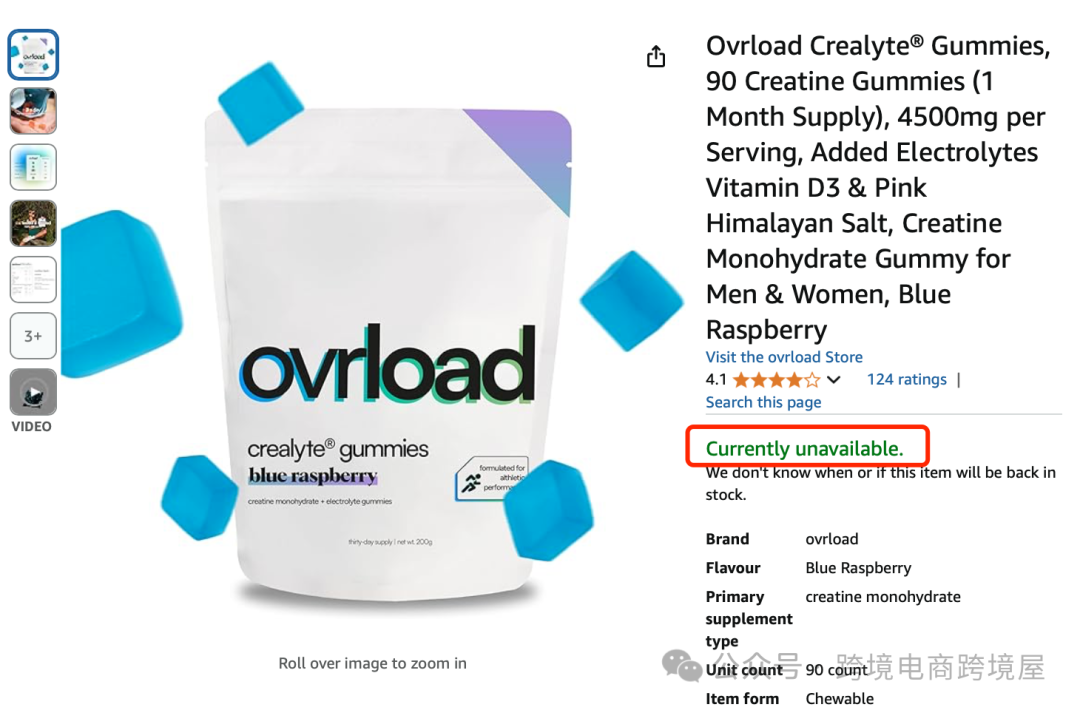 随后有社交媒体账号做测试后指出,Ovrload的肌酸软糖中的肌酸含量接近0,以上种种都引发了Ovrload的亚马逊链接、独立站平台均已经显示不可售。