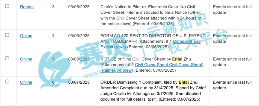 案件号:25-cv-21032品牌原告:Enlai Zhu起诉类型:商标起诉日期:2025-3-5代理律所:Palmer Law Group, PA
